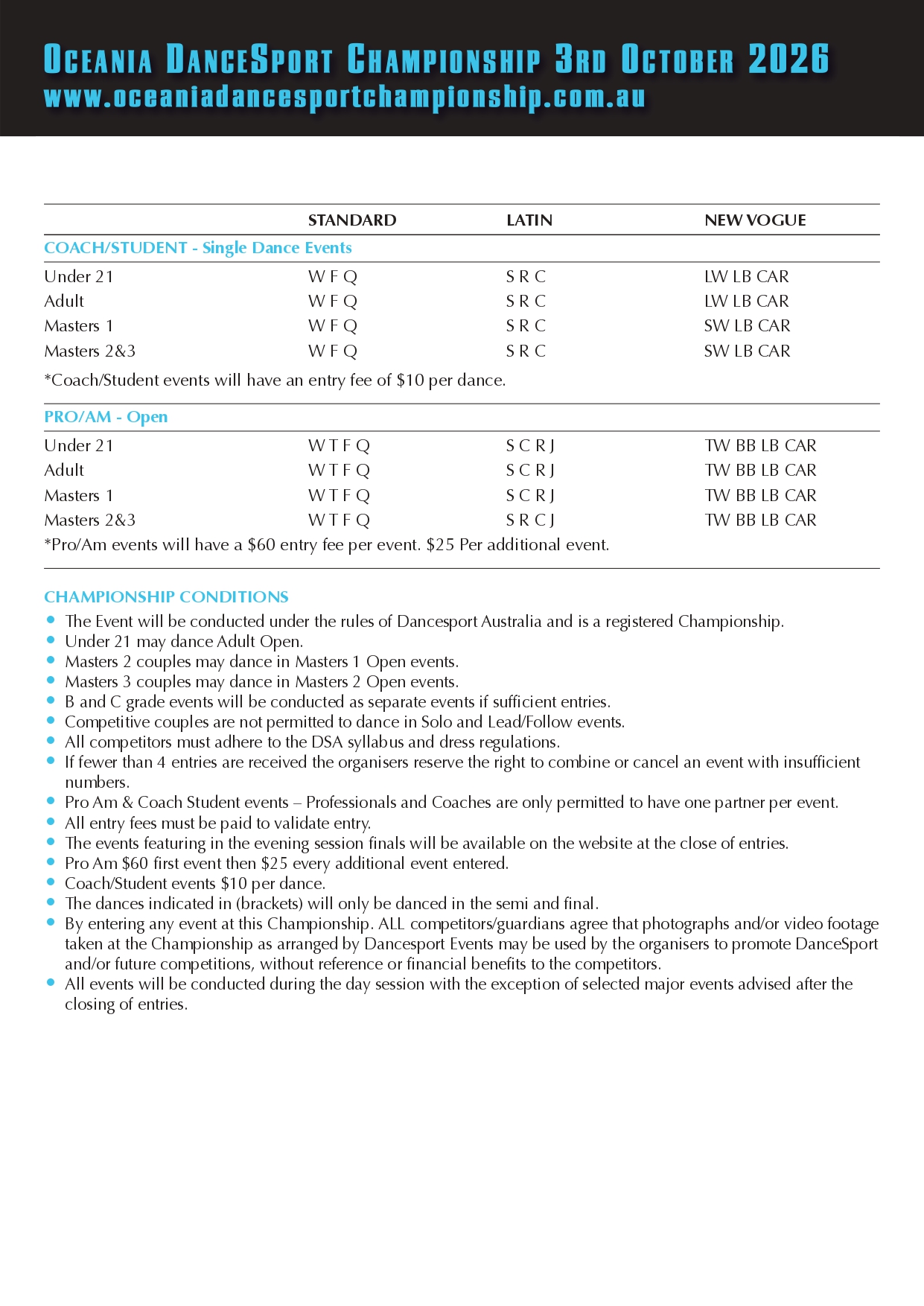 Starting Time: Doors Open at 7.00am. First Event 7.30am Sharp